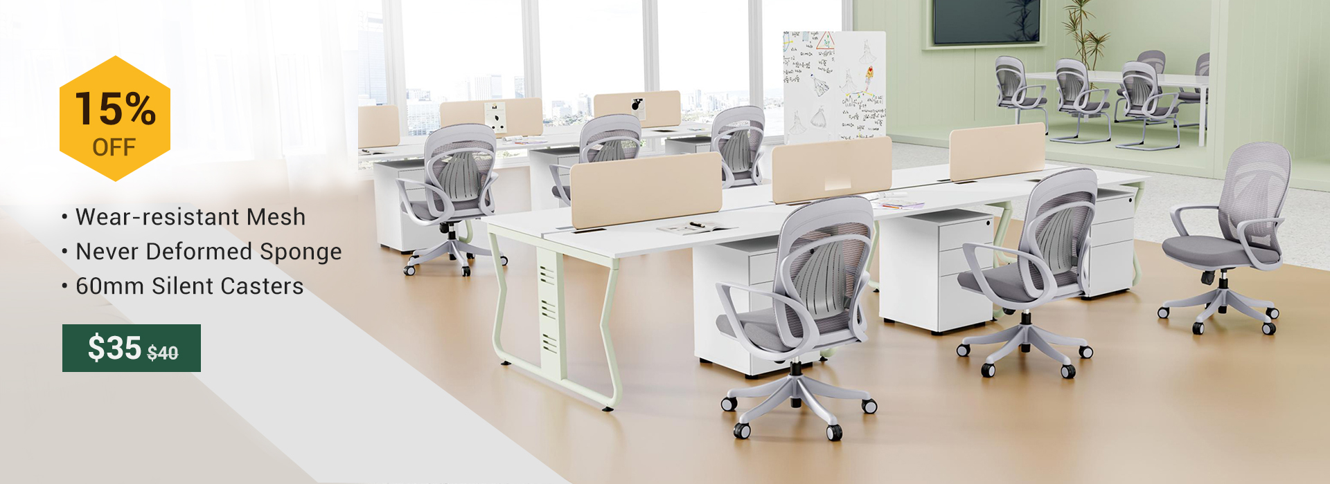 As nosas cadeiras de oficina están feitas de taboleiro de partículas de protección ecolóxica e ambiental de alta calidade E1, papel decorativo importado, resistente ao desgaste e aos arañazos, utilizando accesorios de hardware de alta calidade de marca.